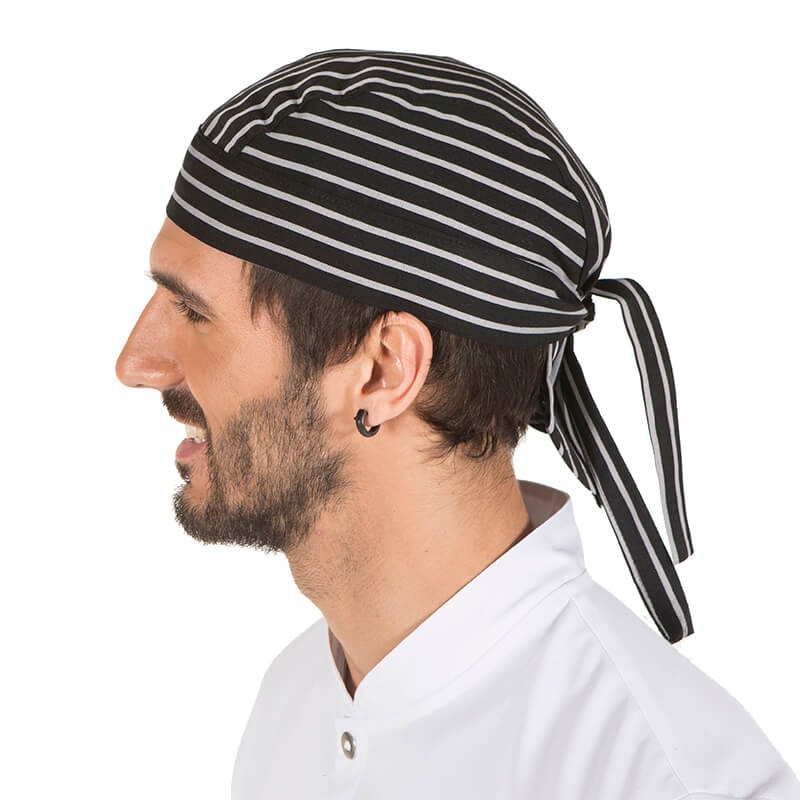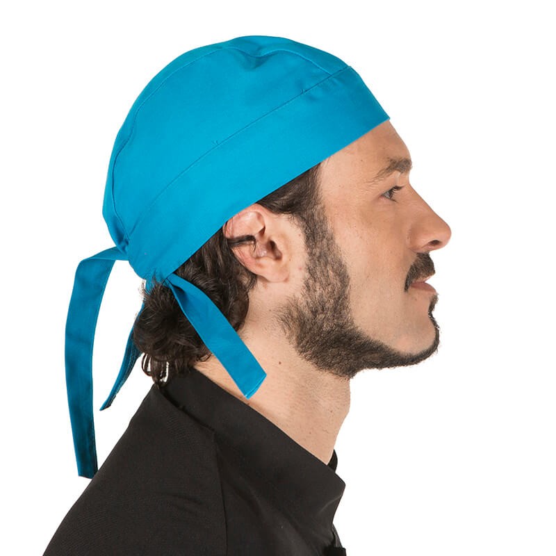 Gorro bandana pirata unisex color liso. Tiras de ajuste. Modelo barato y económico. Ideal para cocineros y cocineras, panaderías, charcuterías y hostelería en general.