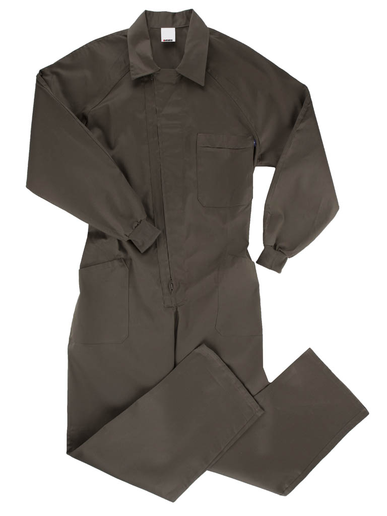 Mono modelo italiano con manga ranglan. Cremallera central, goma en el interior de la cinturilla de la espalda, cinco bolsillos y puños elásticos. Pespunte trasero de seguridad.