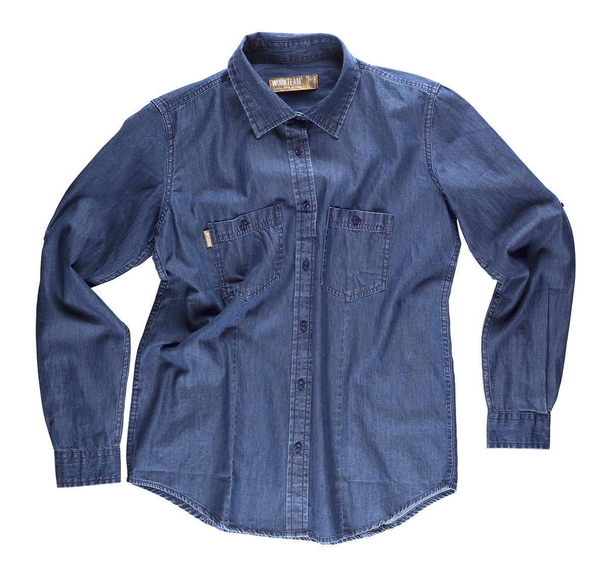 Blusa vaquera entallada de manga larga. Canesú en espalda. Puño de botón. Trabilla para ajustar el largo de la manga. Dos bolsillos en pecho de plastón con cierre de botón.